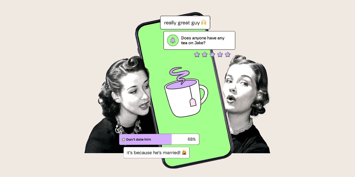 Tea, an app exclusively for women, lets them reverse image search men’s photos, run background checks on potential suitors, and post reviews of men, either deeming them green-flag or red-flag daters. The company website says that “Tea ensures that women have the information they need before meeting someone new,” and was born in 2023 out of the desire of founder Sean Cook, a former product manager at Salesforce, to protect women like his mother, who the site says ran into catfishes and men with criminal records while online dating. Its site boasts that more than 1.6 million women are on the app.
