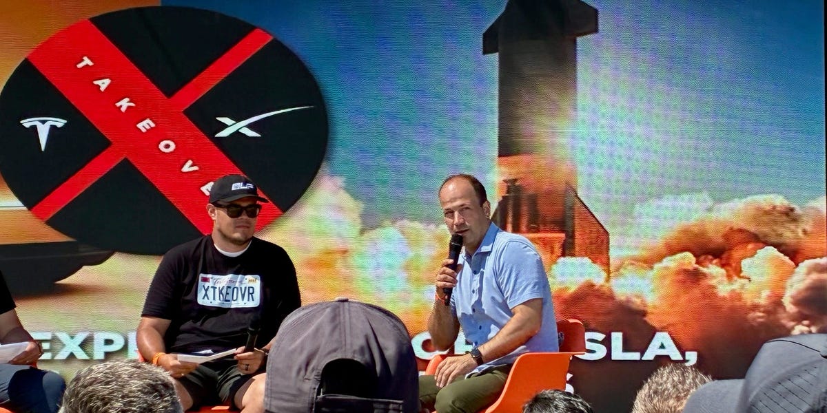 Someone wore a “Don’t bet against Elon” T-shirt. Another sported a shirt with Tesla’s Austin robotaxi service area emblazoned on the front. (It’s shaped a certain way, if you’re wondering.)