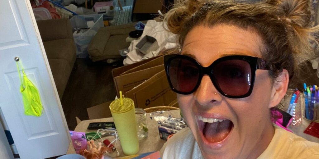 Grace sitting next to the first box she packed after her divorce.