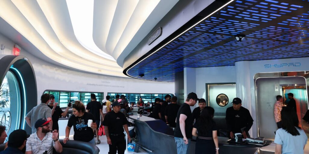 Another Tesla product, its Optimus robot, was also on-site at the opening.