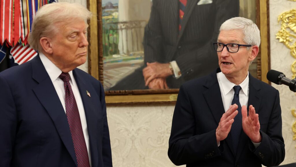 Stocks @ Night is a daily newsletter delivered after hours, giving you a first look at tomorrow and last look at today. Sign up for free to receive it directly in your inbox. Here’s what CNBC TV’s producers were watching as Apple shares lifted the stock market Wednesday, and what’s on the radar for the next session. Apple CEO Tim Cook met with President Donald Trump at the White House on Wednesday evening . We’ll watch the stock closely on Thursday. There’s a lot to talk about, including Apple ‘s investment in the U.S. CNBC’s Kif Leswing reported that the iPhone maker is planning to spend an additional $100 billion on U.S. companies and suppliers over the next four years. Shares are off 18% from the December high. In the past year, Apple stock has gained 2.9%. Shares rose 5% on Wednesday. In after-hours trading, shares of Corning are up 5% and GlobalFoundries is up 8%. AAPL 1Y mountain Apple shares in the past 12 months ‘Mad Money’ and the Great American Consumer Todd Penegor, CEO of Papa John’s , will be on Thursday night with Jim Cramer. The stock has gained about 20% in the past three months, but it remains 33% off the November high. Bill Ready, CEO of Pinterest , will also be on with Cramer. Shares have jumped about 45% in the past three months. The stock is 4% from the February high. Tarang Amin, CEO of E.l.f. Beauty , will also be on with Cramer. Shares have surged 63% in the past three months. However, the stock has lost about 40% in the past 12 months. Big data on ‘Squawk Box’ Watch ” Squawk Box ” for the latest initial jobless claims at 8:30 a.m. ET. The Dow Jones consensus estimate calls for 221,000. We’ll also get Steve Liesman’s “All-America Economic Survey” on “Squawk Box” for an in-depth look at where we stand. Eli Lilly before the bell The pharmaceutical giant will report in the morning . Shares have fallen 3.7% over the past three months. The stock is down 23% from the 52-week high reached last August. LLY 3M mountain Eli Lilly shares in the past three months Block after the bell The payment giant reports after the bell. Block shares have gained about 61% in the last three months. It is still 23% from the December high. Firefly Aerospace prepares to go public The space company that develops launch vehicles and lunar landers will debut on the Nasdaq Thursday. It will trade under the ticker “FLY.” CNBC TV’s Morgan Brennan is on the space beat and will cover the company as it becomes a publicly held stock. CoreWeave has surged 175% since listing earlier this year . Figma has jumped 173% since last week’s listing . eToro has added 8% since going public in May . Chime Financial has gained 24% since its debut . Circle has skyrocketed 421% since going public .